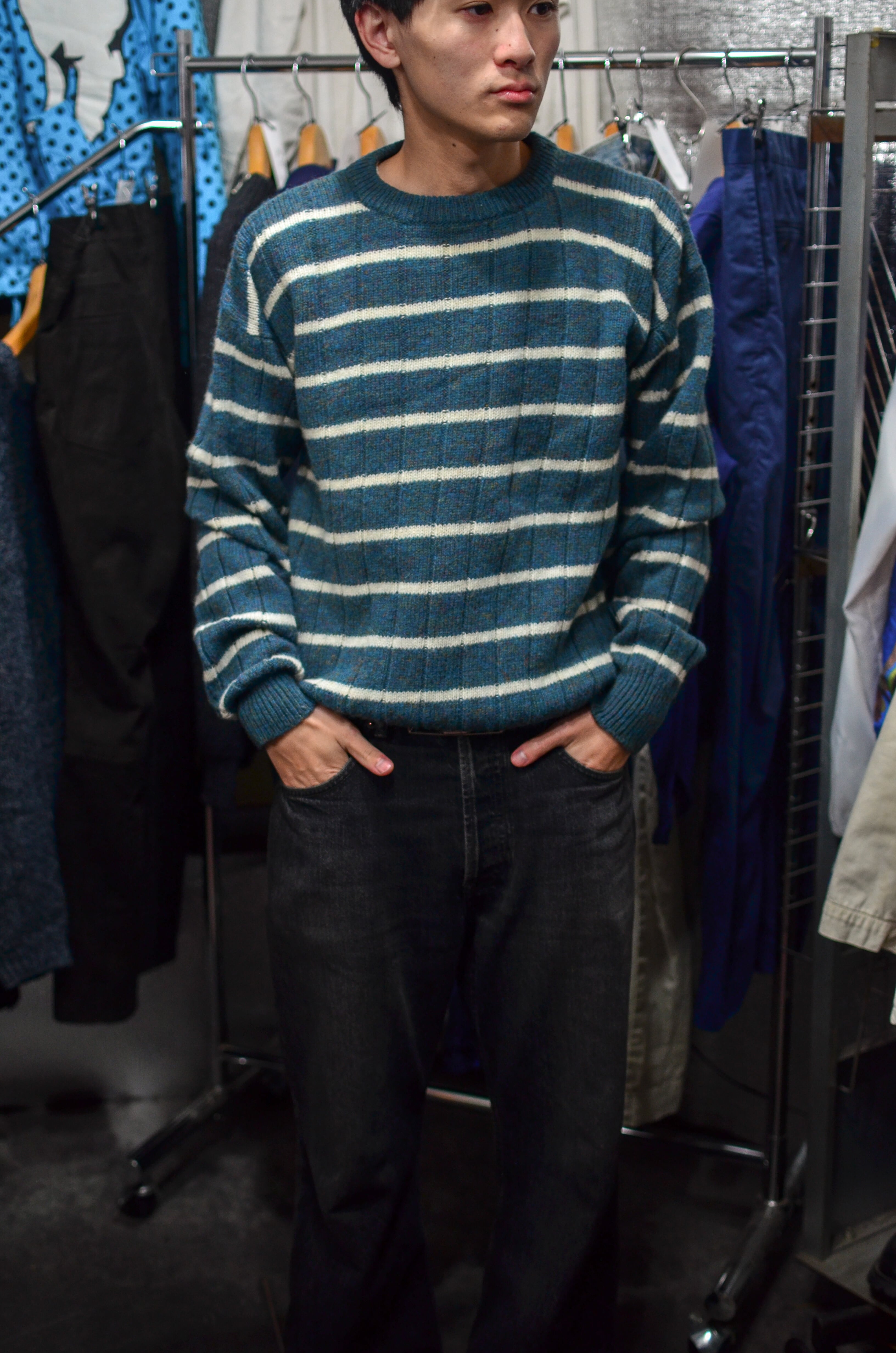 絣Green×White Knit